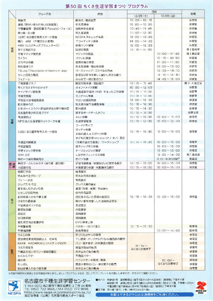 2025年10月25日(土)・26日(日)、「第50回 ちくさ生涯学習まつり」が千種生涯学習センターで開催!!